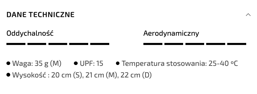 • Zwiększona wysokość zgodnie ze standardami UCI, zapewniająca lepszą ochronę i optymalną regulację temperatury.