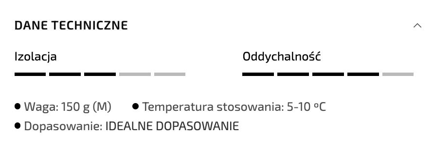 • Izolacja i termoregulacja: wełna merynosów znana jest ze swoich właściwości izolacyjnych i termoregulacyjnych, które pomagają utrzymać optymalną temperaturę ciała. Skład: 38% wełna merynosów, 35% polipropylen, 22% poliamid, 5% elastan.