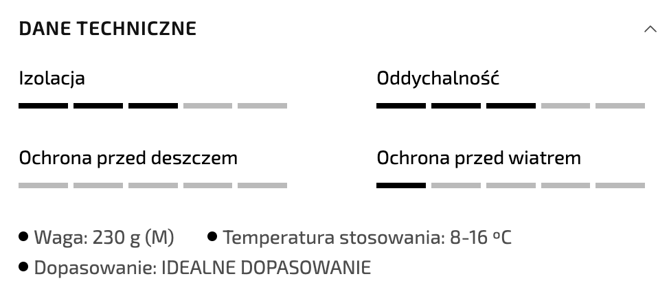 Dzięki zastosowaniu tkaniny z mikropolarem, bluza doskonale utrzymuje ciepło, zapewniając jednocześnie elastyczność i komfort. Anatomiczny krój doskonale przylega do ciała, sprzyjając aerodynamice, a jednocześnie pozostawia wystarczająco dużo miejsca na dodatkową warstwę bazową w razie potrzeby.