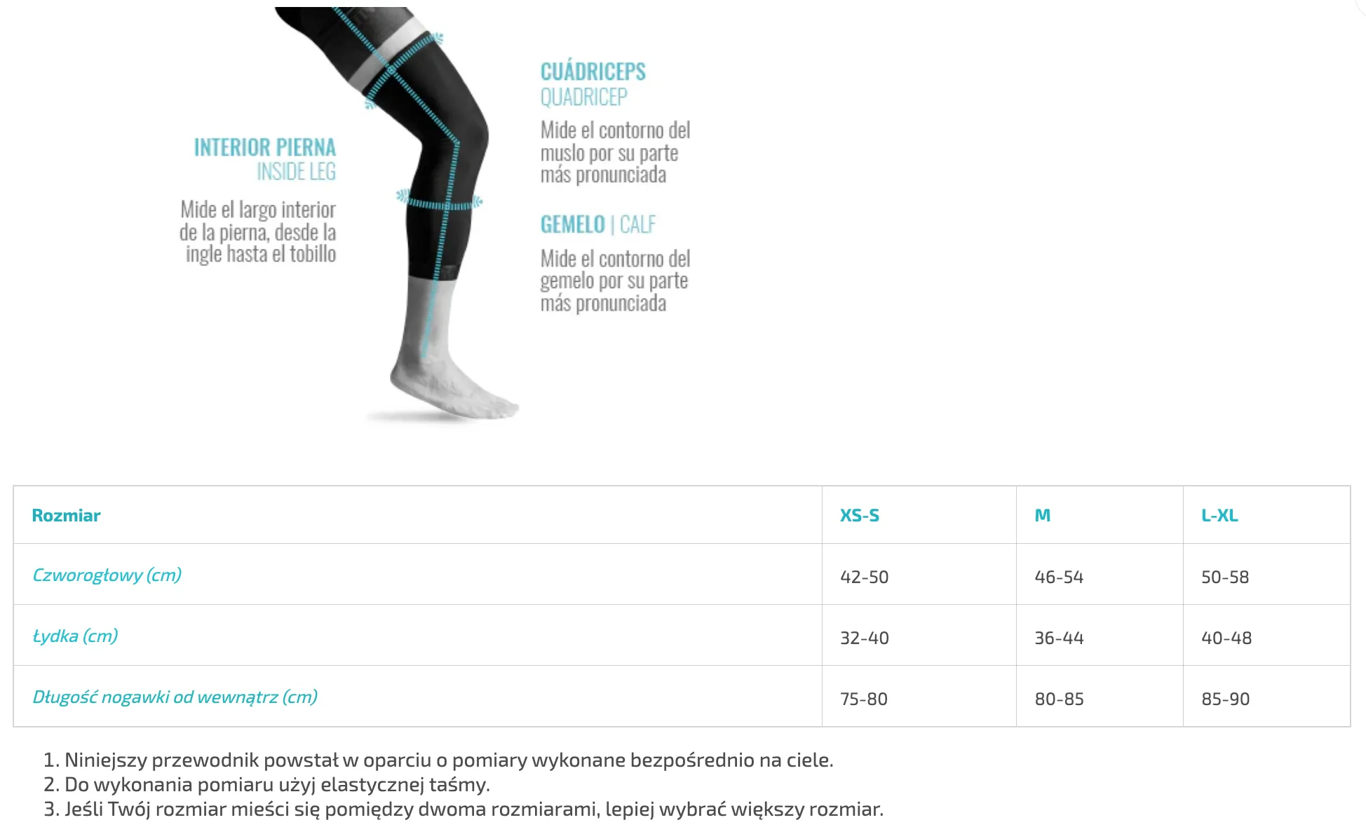 - Dopasowanie: Silikonowy pas górny dla lepszego przylegania do uda