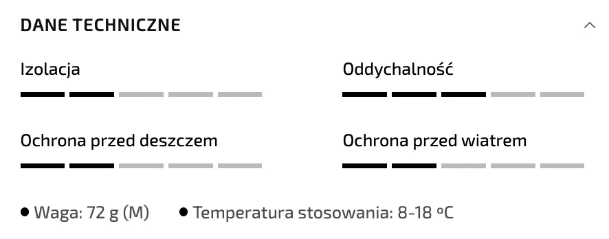 - Waga: 72 g (rozmiar M)
