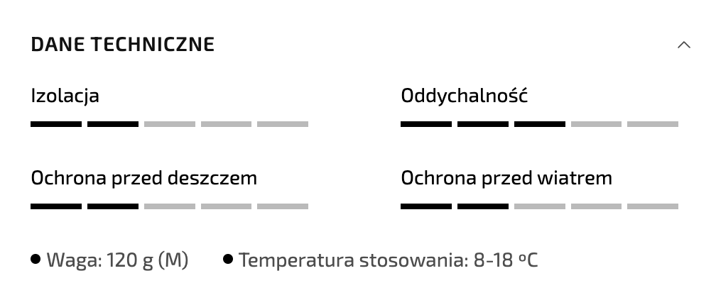 - Lekka, termiczna tkanina o wysokiej elastyczności – zapewnia wygodę i swobodę ruchów podczas jazdy.