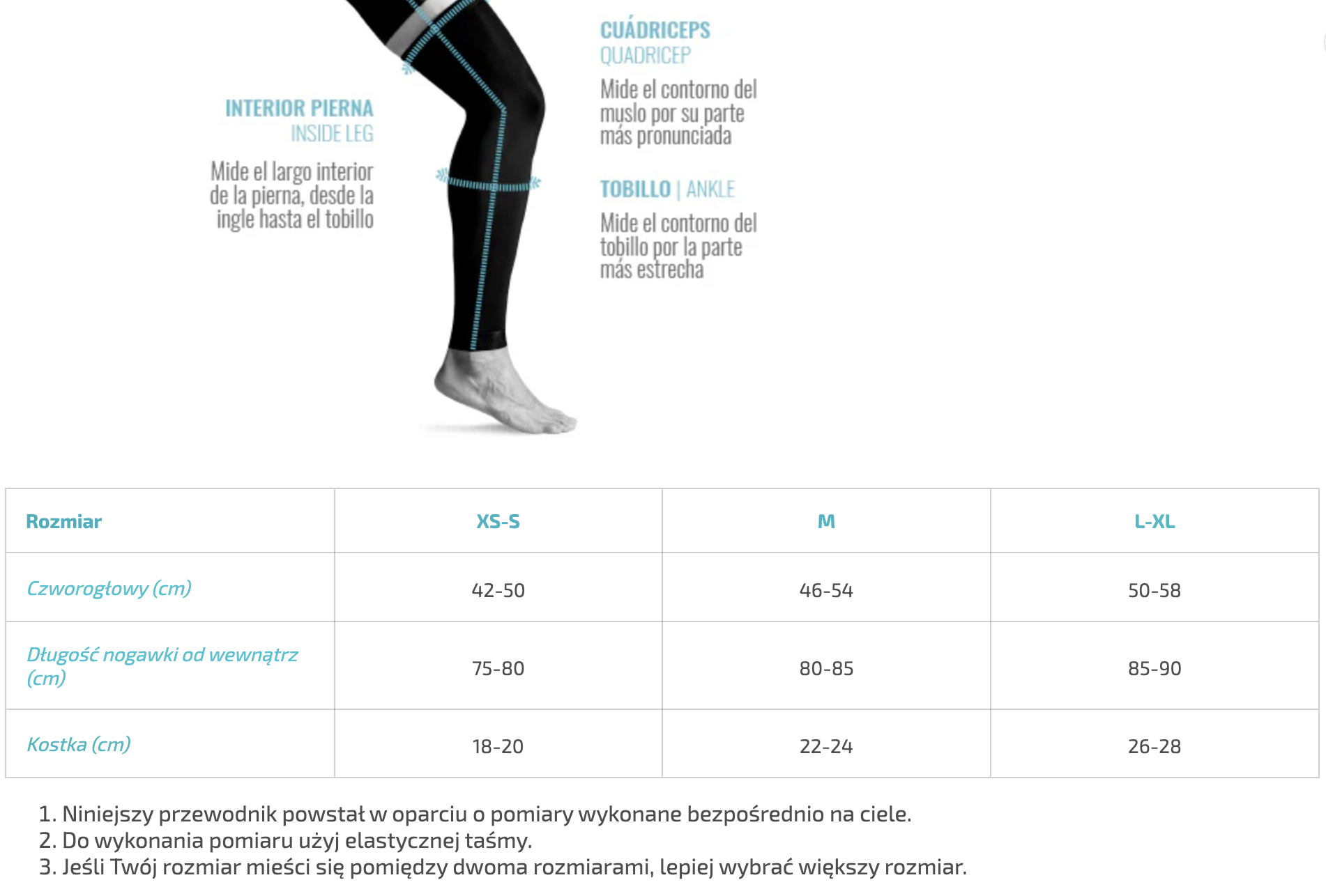 - Górny pasek silikonowy – zapewnia doskonałą przyczepność i stabilność na udzie, zapobiegając przesuwaniu się nogawek.
