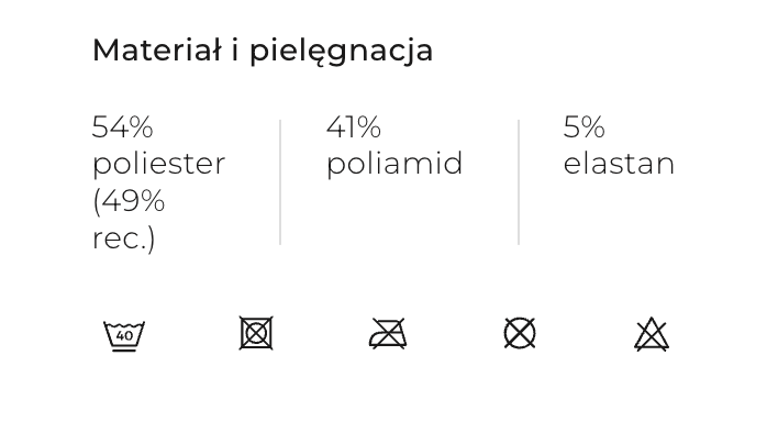 - Szybkoschnący materiał: mieszanka poliamidowo-poliestrowa gwarantuje szybkie schnięcie i izolację cieplną.