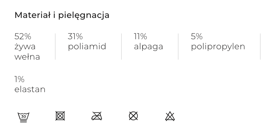 - Maksymalna izolacja termiczna: dzięki połączeniu wełny merino i alpaki skarpety skutecznie chronią przed zimnem.