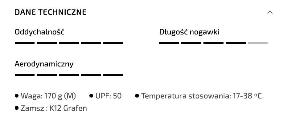 - Minimalistyczny, anatomiczny krój, który eliminuje nadmiar materiału i poprawia aerodynamikę podczas jazdy.